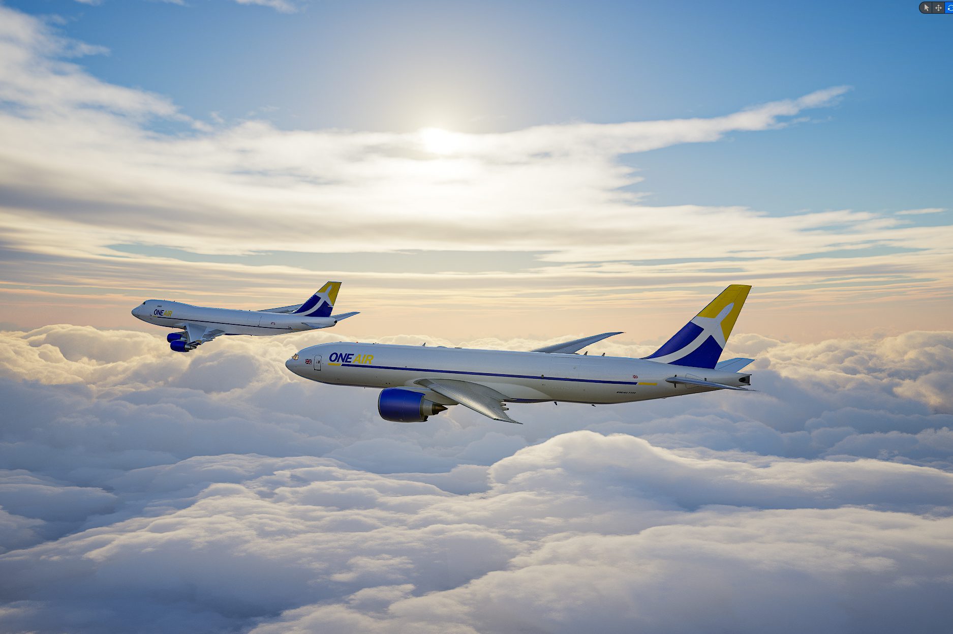 One Air is a British all-cargo airline that launched operations in 2023 and now flies out of East Midlands as it grows its long-haul cargo network. In 2025 the group introduced its first brand-new Boeing 777F, with a second due to join the fleet, signalling a step-up in capacity and profile. We created a suite of photoreal CGI stills of the new 777F, and refreshed livery to support their brand consolidation, giving the team consistent, campaign-ready visuals for web, social, press packs and sales collateral before both aircraft enter full service.