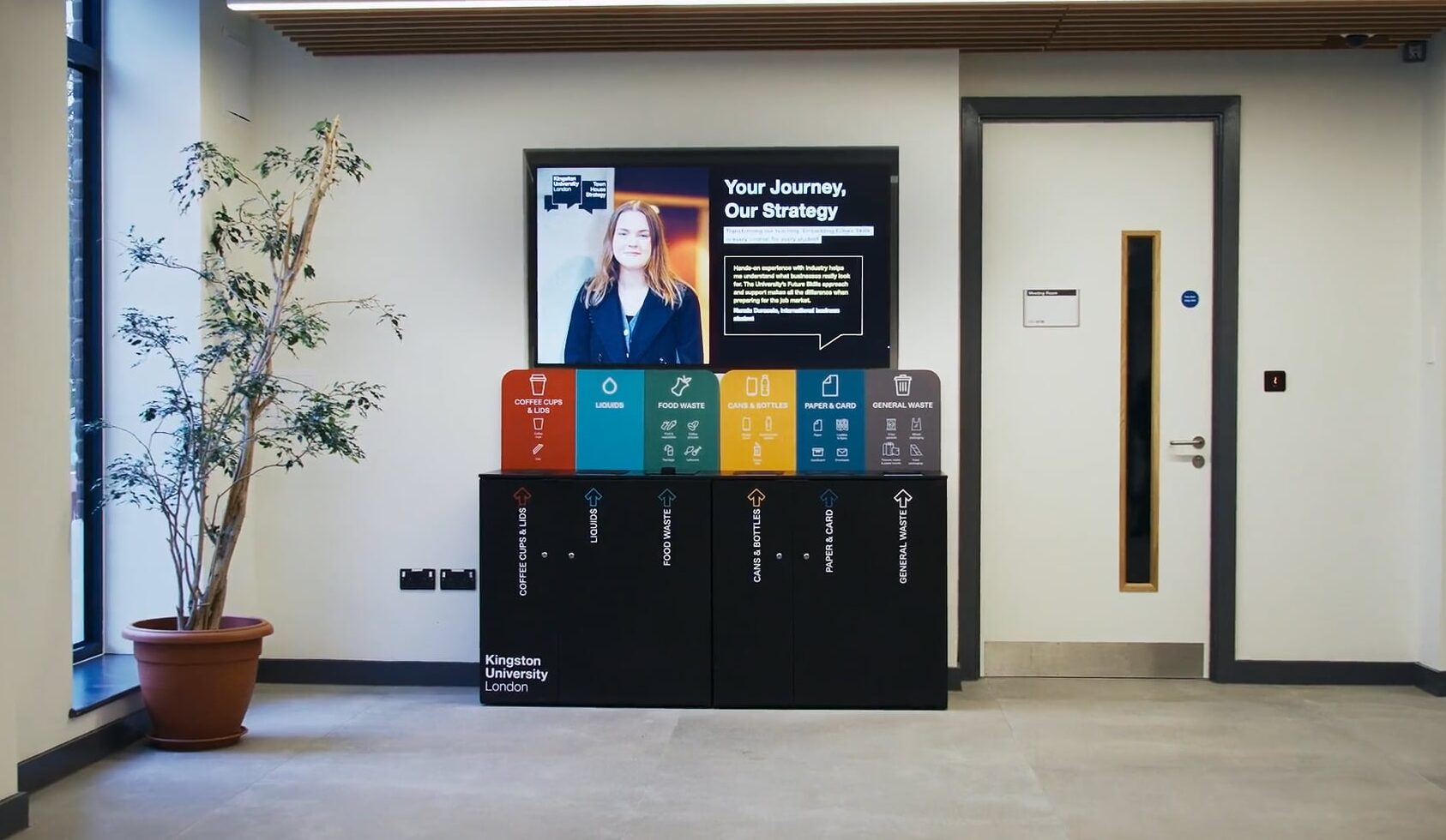 In this case study video, Stephanie Todd, Kingston University's Strategic Operational Lead for Sustainability, discusses her experience working with Unisort to install new recycling facilities in university buildings. She discusses the problems they faced prior to introducing the Unisort recycling system, as well as how the new bins have significantly increased recycling rates.